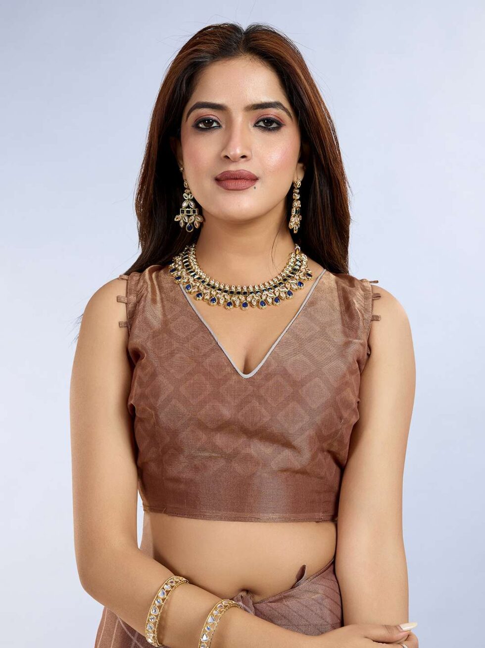 Be the first to review “Abstract Printed Linen Shimmer Saree in Earth Tones”