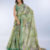 This stunning lavender saree features a unique mix of abstract prints, from delicate floral patterns to modern geometric designs on the border. The subtle sheen of the fabric adds an elegant touch, making it a perfect choice for festive events and special gatherings.