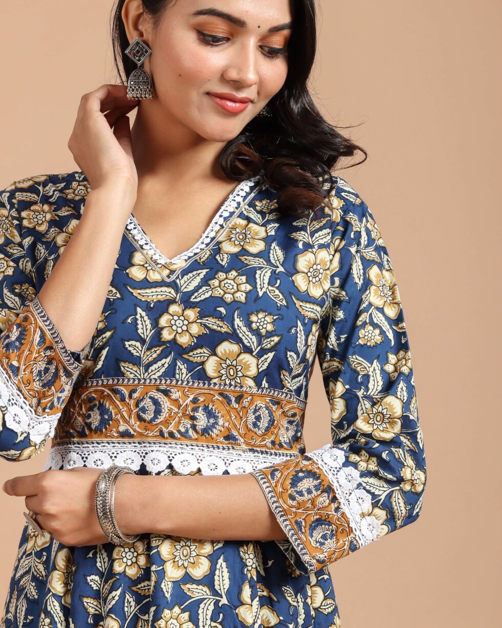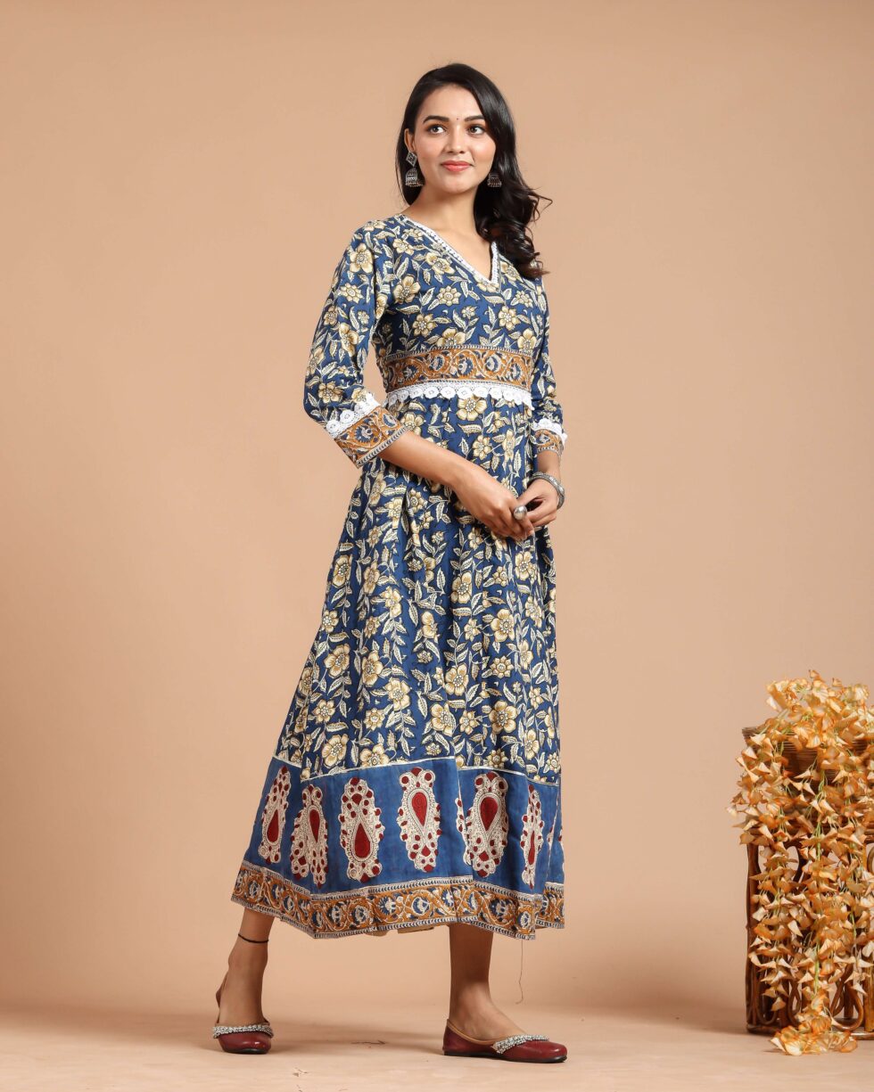 Be the first to review “Blue Floral Anarkali Maxi Dress with Ethnic Border Detailing”