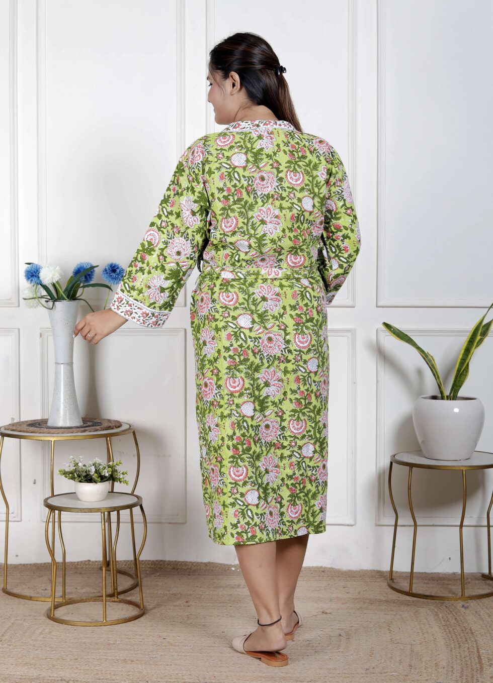 Handcrafted Cotton Block Printed Long Robe | Comfortable Loungewear & Bathrobe for Women