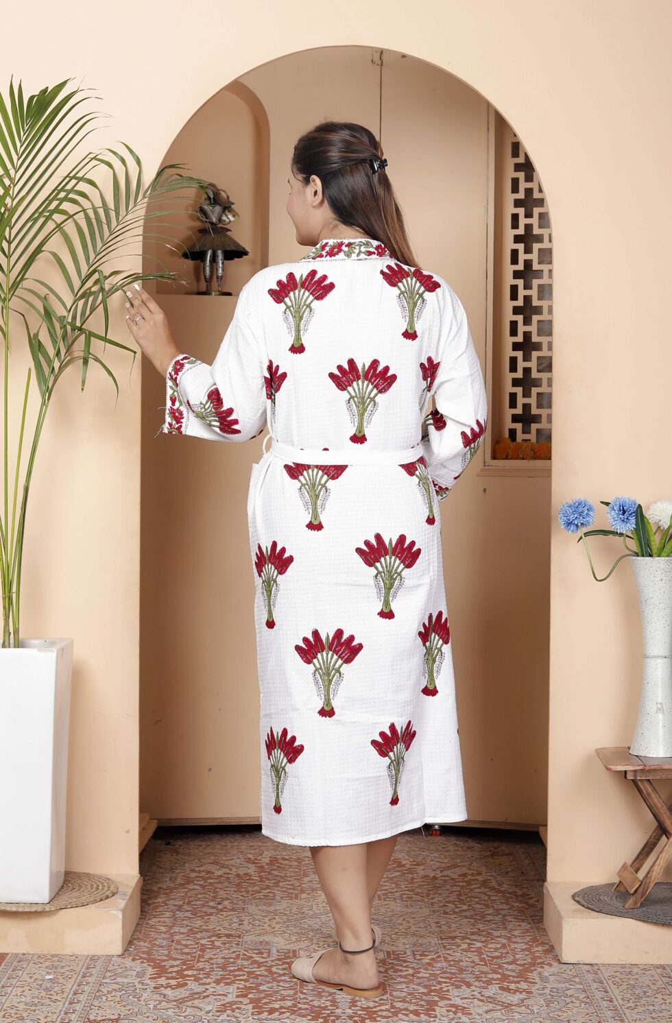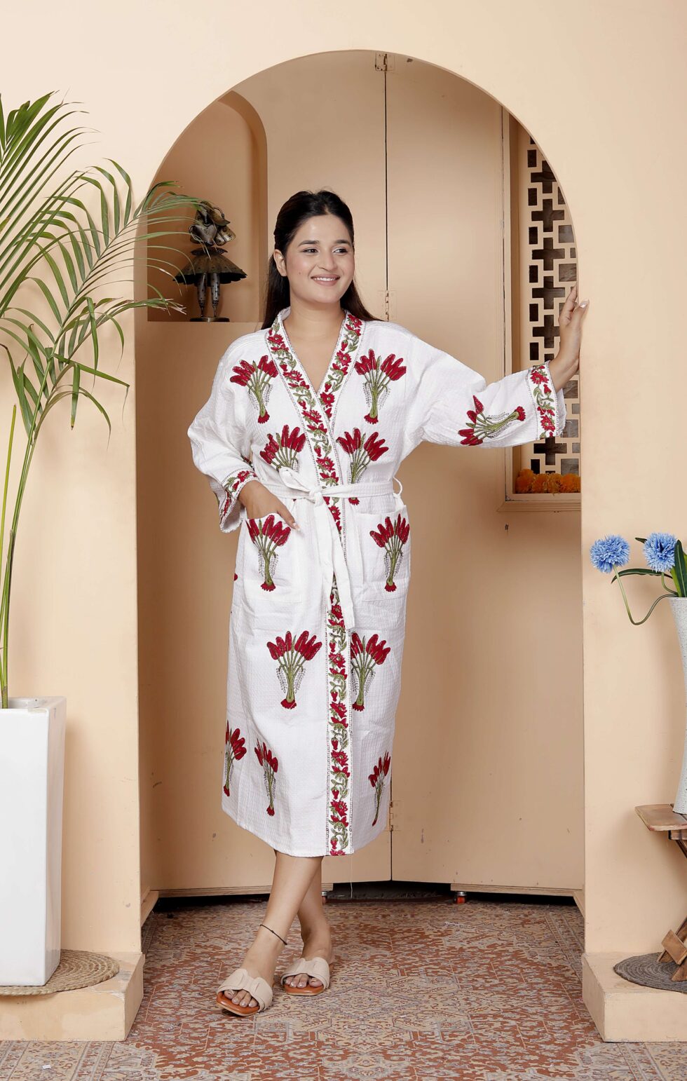 Handcrafted Cotton Block Printed Long Robe | Comfortable Loungewear & Bathrobe for Women