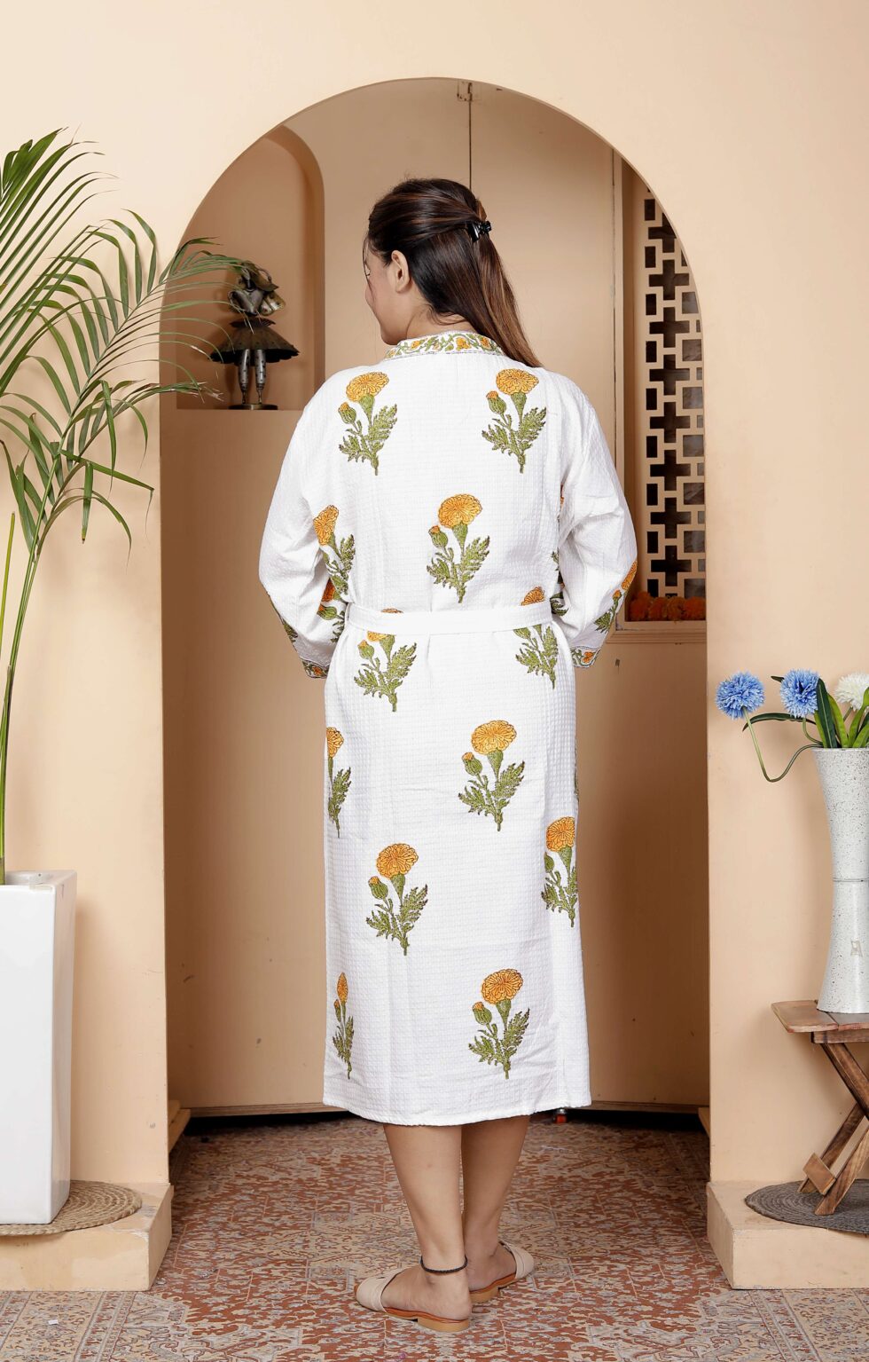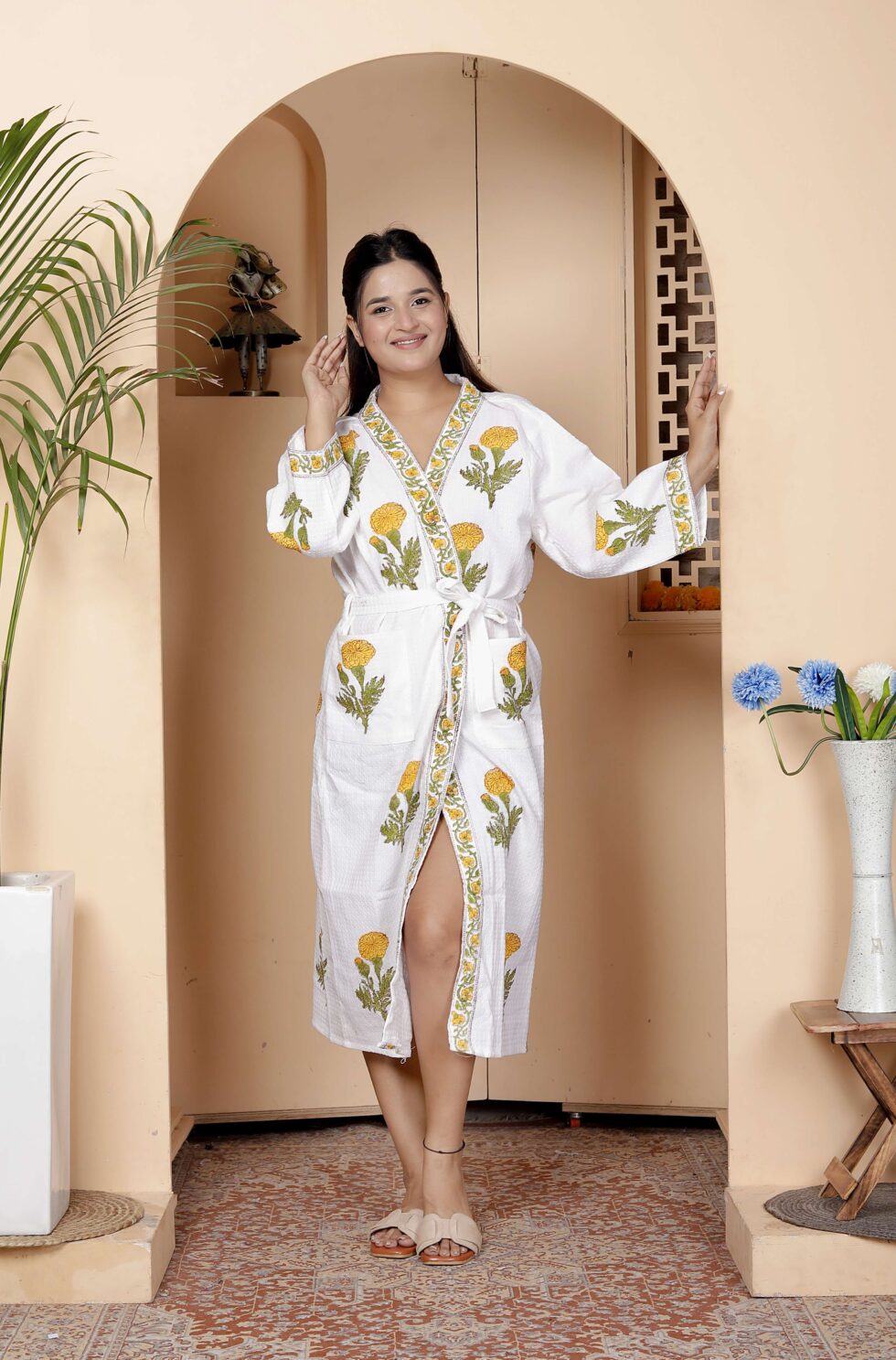 Handcrafted Cotton Block Printed Long Robe | Comfortable Loungewear & Bathrobe for Women
