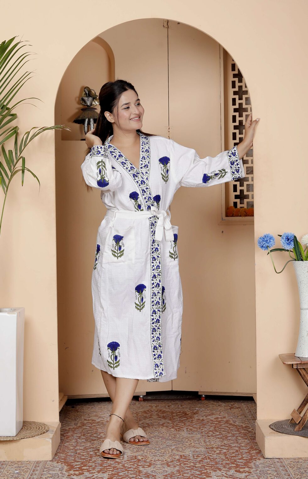 Handcrafted Cotton Block Printed Long Robe | Comfortable Loungewear & Bathrobe for Women