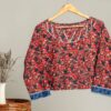 elegance to your wardrobe with this handcrafted block print cotton Designed with intricate floral motifs on a soft beige base, this top is perfect for casual outings, office wear, or ethnic styling. The long sleeves with contrasting red printed cuffs bring a unique charm, blending traditional artistry with modern comfort.