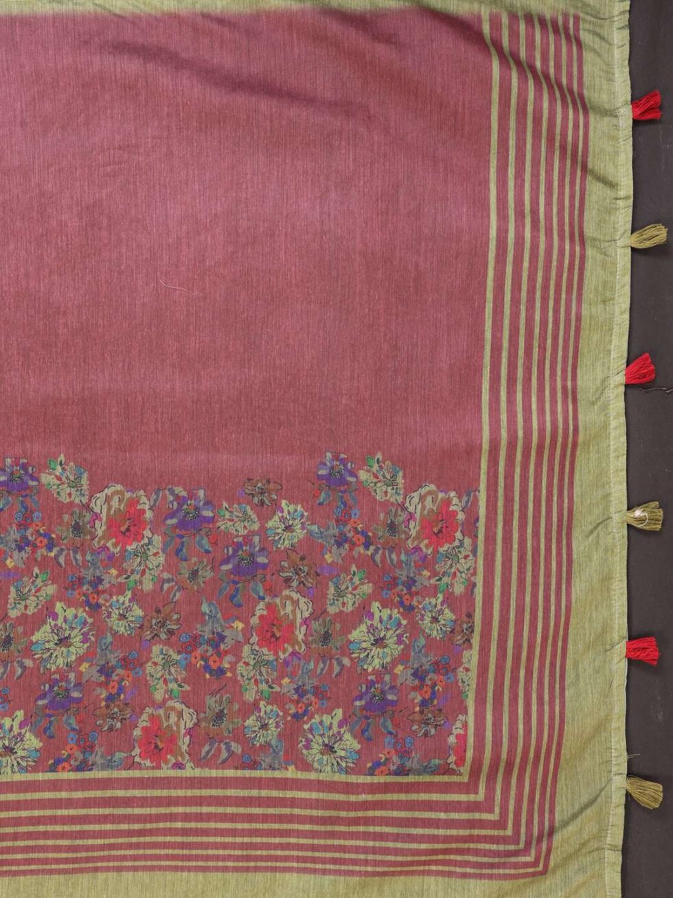 Maroon & Olive Floral Printed Chanderi Saree ? Elegant Festive & Traditional Wear