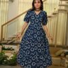 Multicolor Zigzag Printed Cotton Maxi Dress with Puff Sleeves ? Trendy Casual & Party Wear