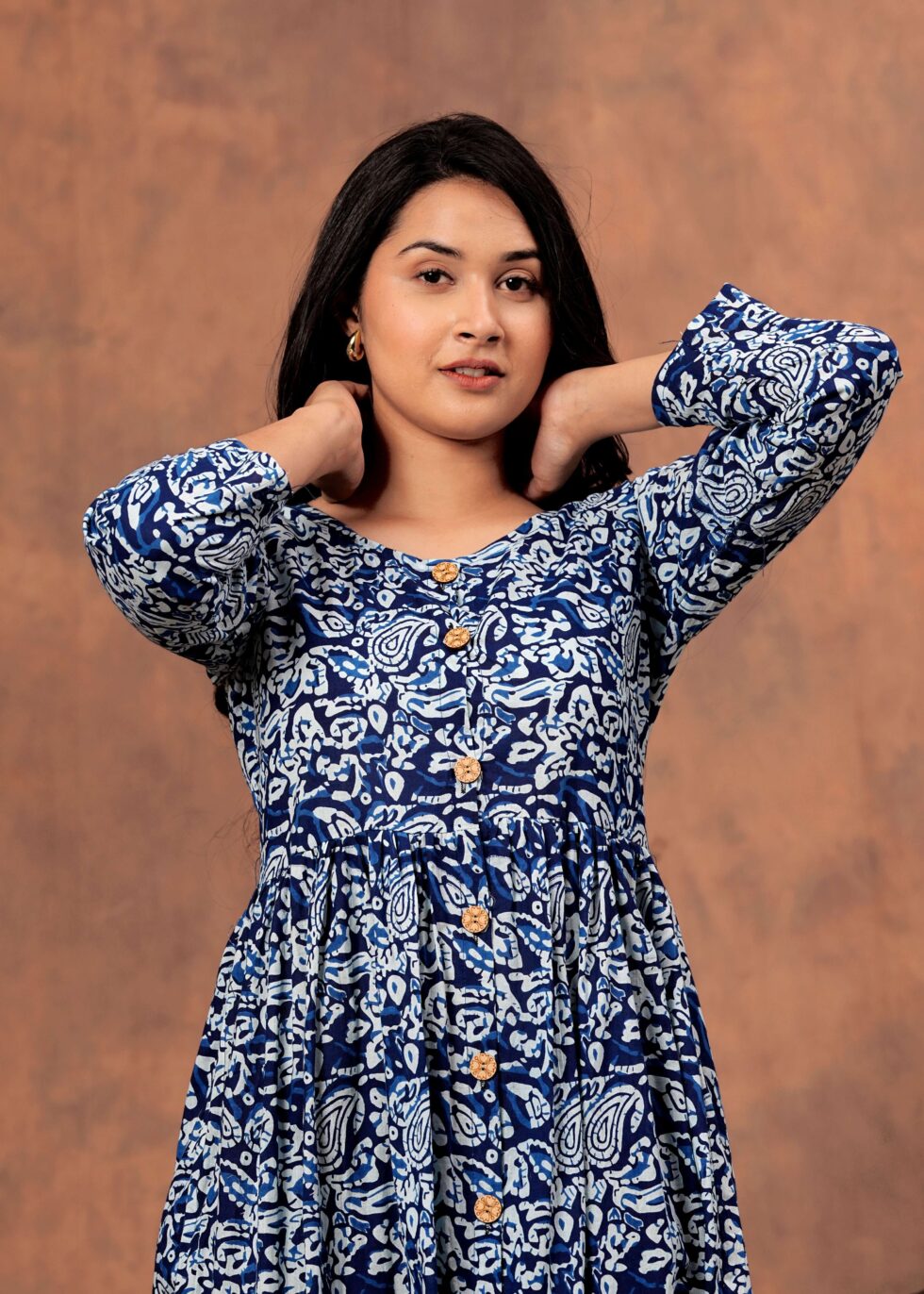 Be the first to review “Navy Blue Floral Printed Cotton Midi Dress with Button-Down Front”