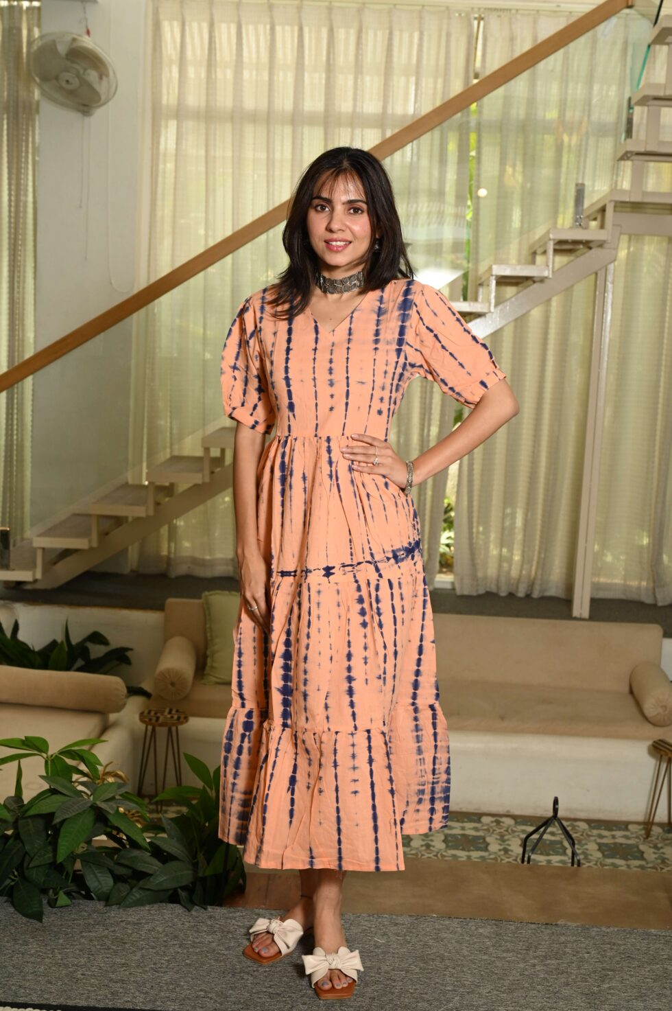 Be the first to review “Peach Printed Cotton Anarkali Maxi Dress with Puff Sleeves ? Elegant Casual Wear”