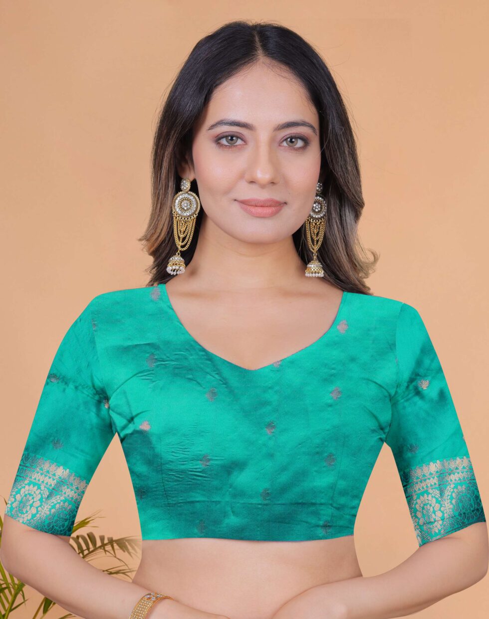 Elevate your festive wardrobe with the Royal Enchant Banarasi Silk Saree. Soft lavender-silver silk adorned with intricate circular and peacock zari motifs, complemented by a striking royal blue border and ornate pallu ? perfect for weddings, celebrations, and cultural events.