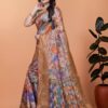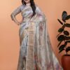Be the first to review “Sky Blue Floral Printed Soft Silk Saree with Zari Border”