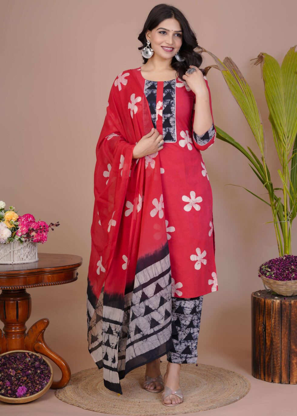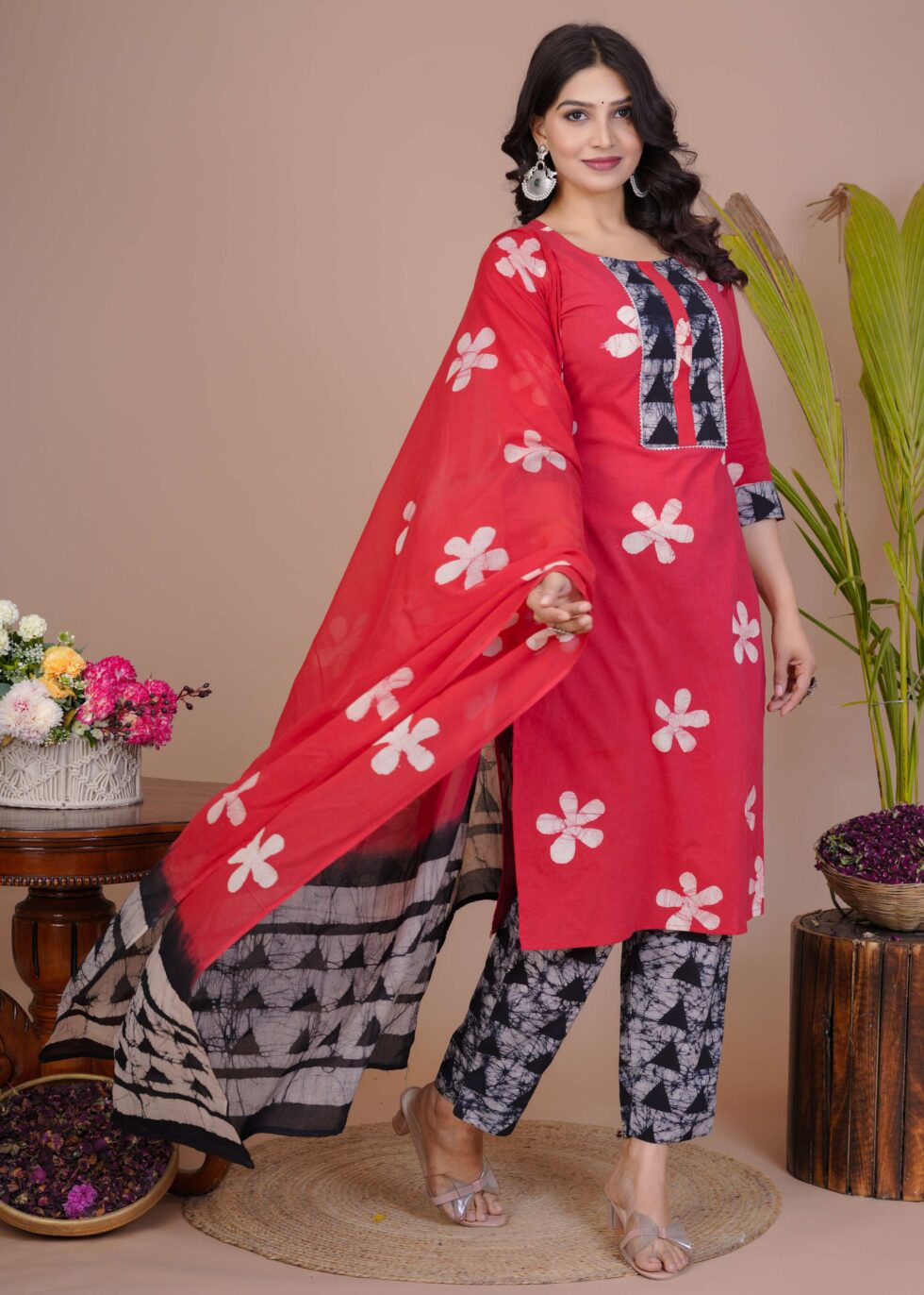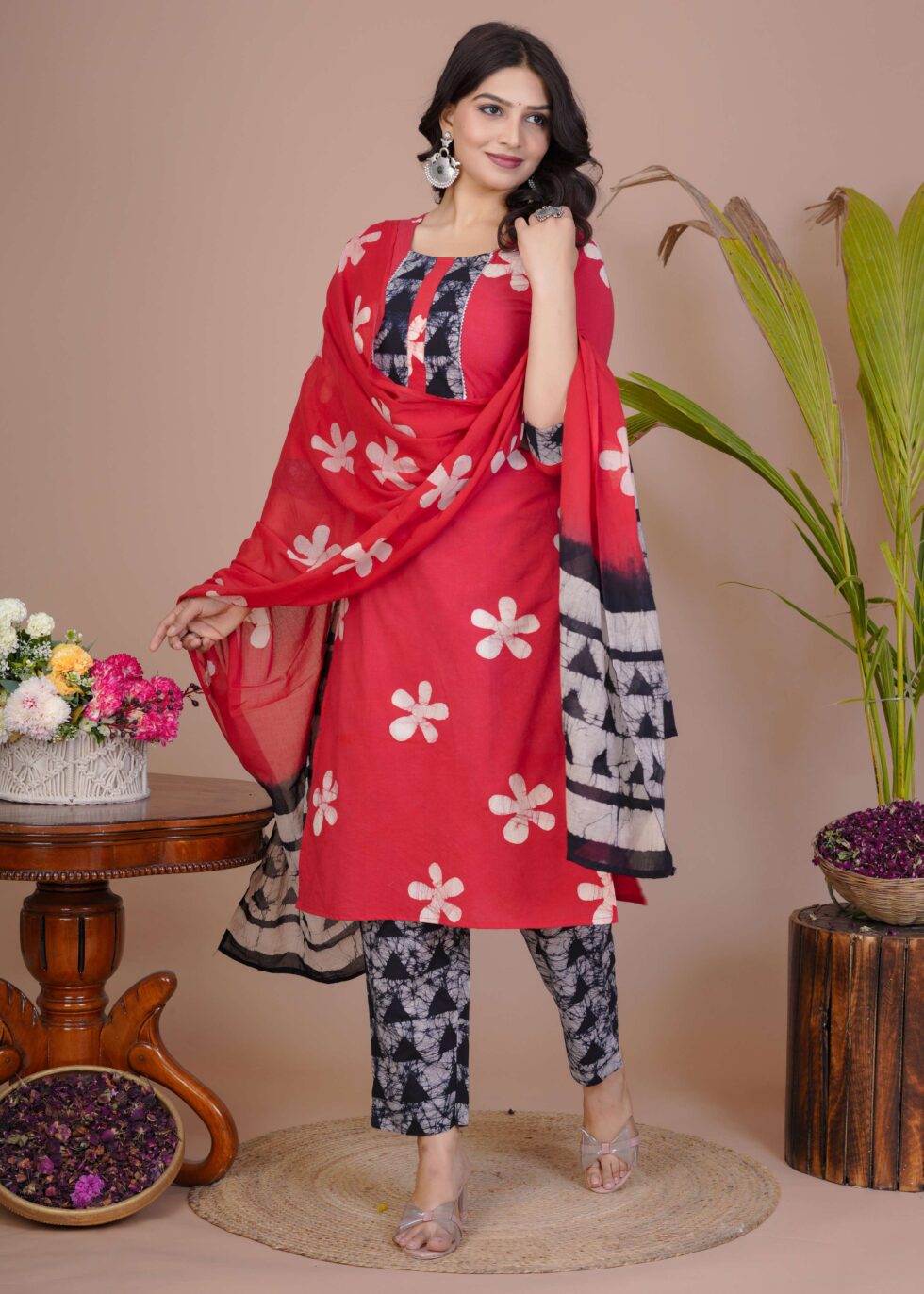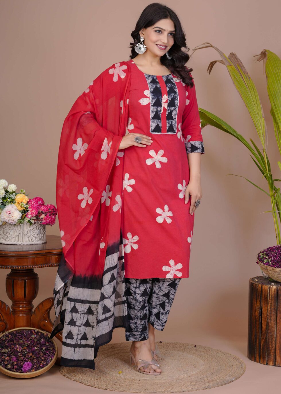 Ethnic wardrobe with this beautifully designed cotton straight kurti set with pant and dupatta. Crafted from breathable cotton fabric, this outfit ensures all-day comfort while giving you a graceful and stylish look. The straight kurti is adorned with intricate prints, paired with a matching pant and a lightweight dupatta that adds elegance to the ensemble. Perfect for casual outings, festive occasions, or office wear, this cotton kurti set offers both comfort and sophistication.